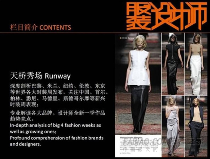 《服裝設(shè)計(jì)師》雜志主要介紹海內(nèi)外知名品牌、時(shí)裝設(shè)計(jì)師和時(shí)尚精英;時(shí)裝、成衣、飾品、箱包等時(shí)尚產(chǎn)品流行資訊。