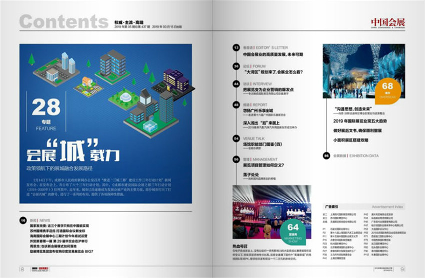 《中國會展》給讀者帶來全新的閱讀體驗,無論發行量還是影響力,均在財經類雜志中位居前列。中國會展業具廣泛影響力的核心傳媒。雜志憑借其權威、客觀、公正的新聞報道以及全面、準確、及時的會展資訊,成為海內外會展企業了解中國會展市場的首選媒體。