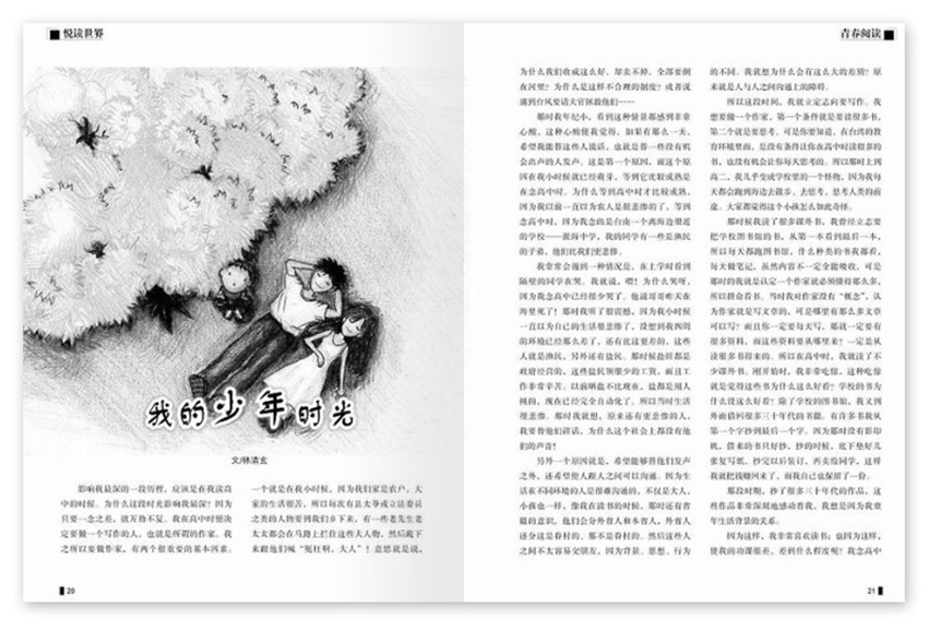 《中國校園文學(xué)》,一本非常耐看的雜志。為那些心懷文學(xué)夢的青蔥少年專門定制。“悅讀世界”里名家名作讓我們穿越時(shí)空與大師進(jìn)行心與心的對話,觸摸他們溫潤的文字,感受他們厚重的思想。