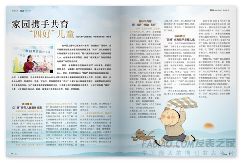 《中華家教》給讀者帶來全新的閱讀體驗,無論發(fā)行量還是影響力,均在學(xué)習(xí)輔導(dǎo)雜志中位居前列。新穎、科學(xué)、智慧、實用的家庭教育理念、方法和咨詢,始終堅持正確的輿論導(dǎo)向,堅持正確的辦刊宗旨,全心全意為少年兒童和家長服務(wù)。