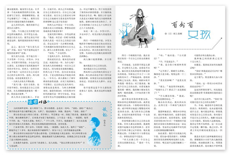 一方面雜志盡量發出中學生自己的聲音,這些來自中學生親切的文字,就像紫薇藤漏下的陽光,照進青春初長成的一顆顆渴望的心房;另一方面,也找到了大師和大俠們青春期的人生經歷和思考,作為良師益友的對照,溫情、勵志,是中學生學習的好幫手,人生成長的好助手,生命趣味探索的好地圖。